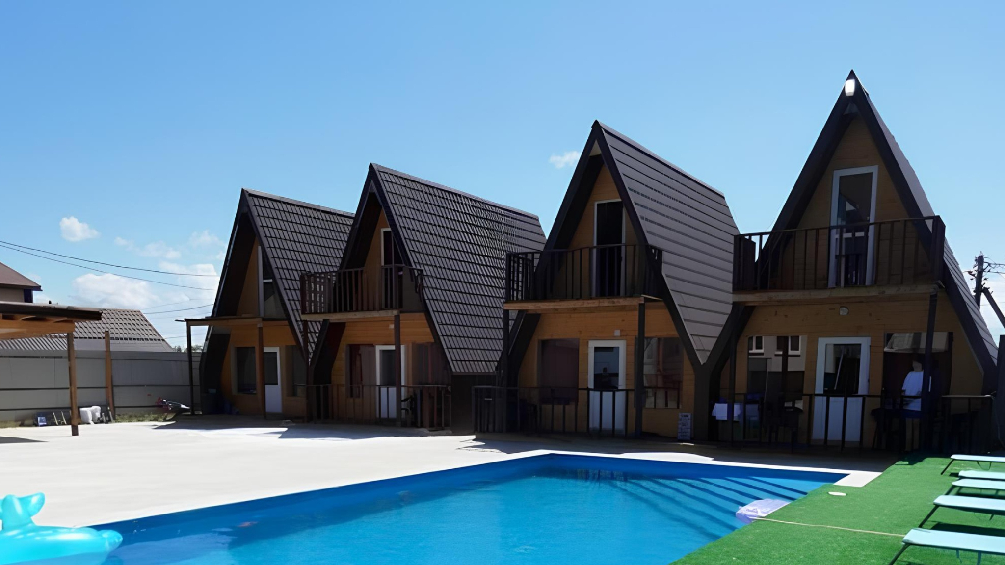 Villa GraNata— ваш комфортный отдых у Азовского моря! Четыре двухэтажных коттеджа A-frame(до 6 гостей каждый) с балконом и видом на море — идеальны для семьи или компании. СПА-зона круглый год: русская баня на дровах, горячий чан и подогреваемый бассейн под ветрозащитным куполом +35°C. Для всех возрастов: детская площадка с батутом и качелями, для взрослых — настольный теннис, беседка, караоке и мангальная зона. Мы находимся в станице Голубицкой, недалеко от песчаных пляжей Азовского моря. Работаем 365 дней в году — отдыхайте, когда хотите!