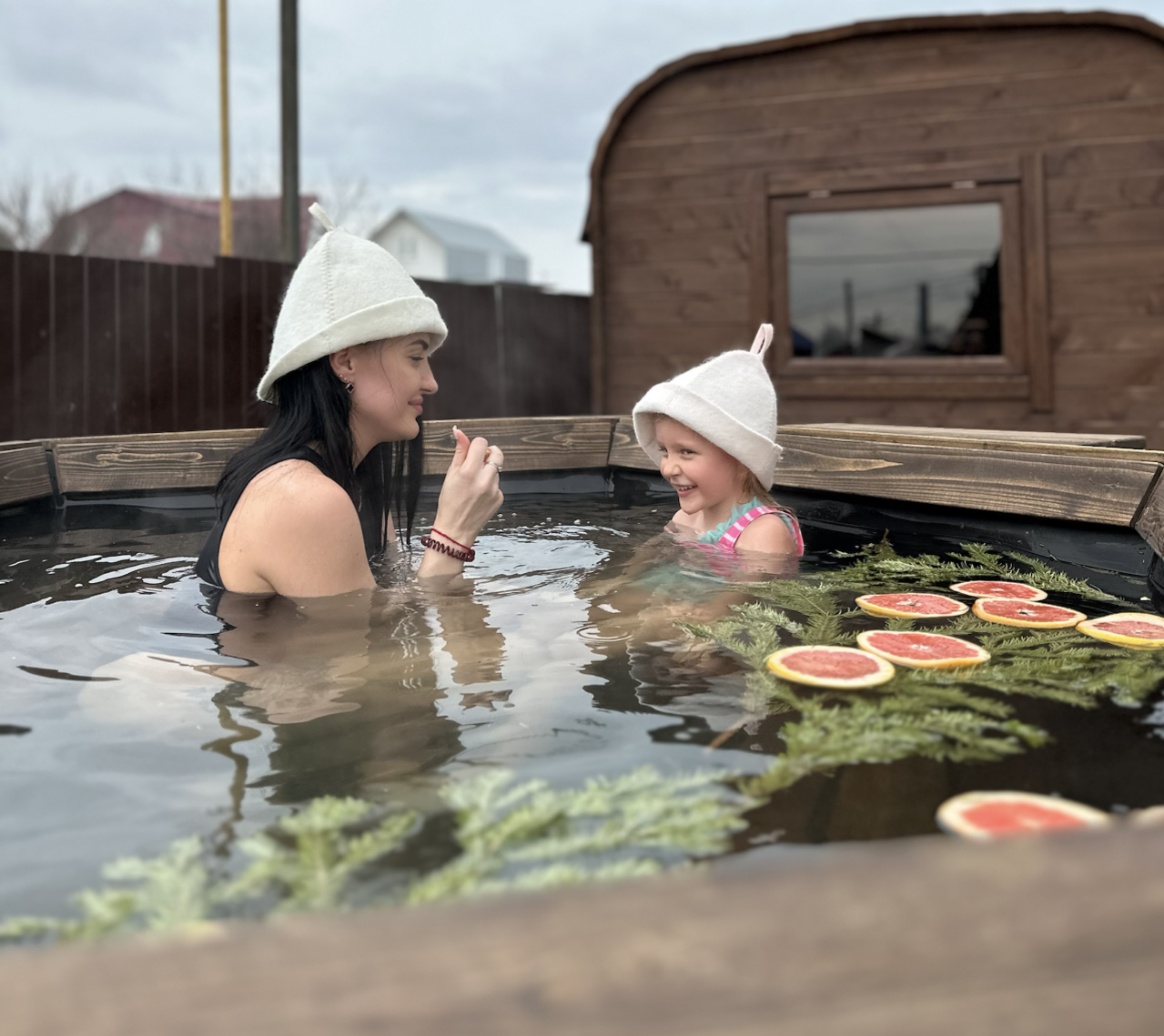 Чан на дровах вмещает до 6 гостей. Минимальное время заказа 2 часа. Бассейн включен в стоимость.